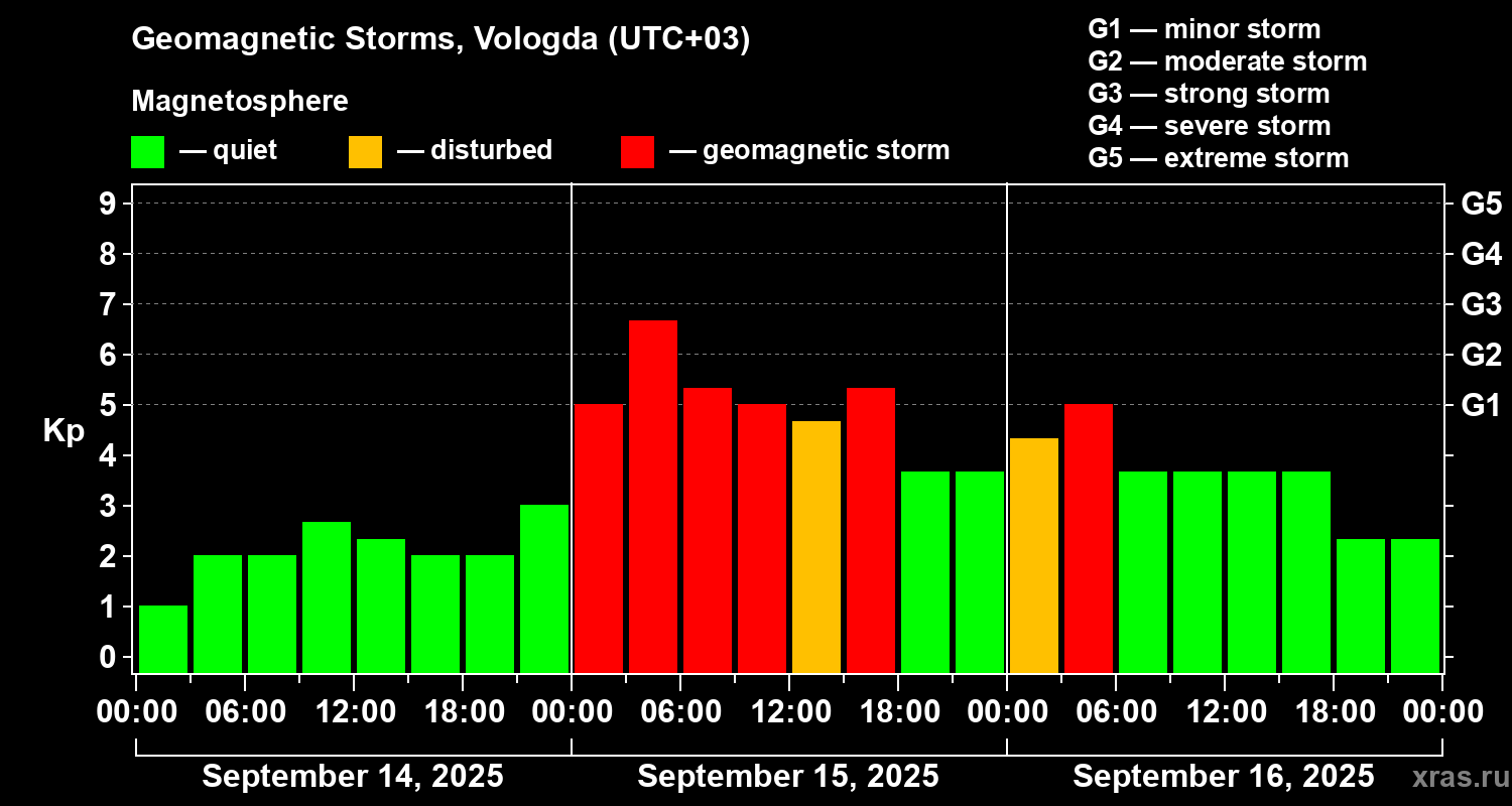 Geomagnetic storms in Vologda — Sep 16, 2025