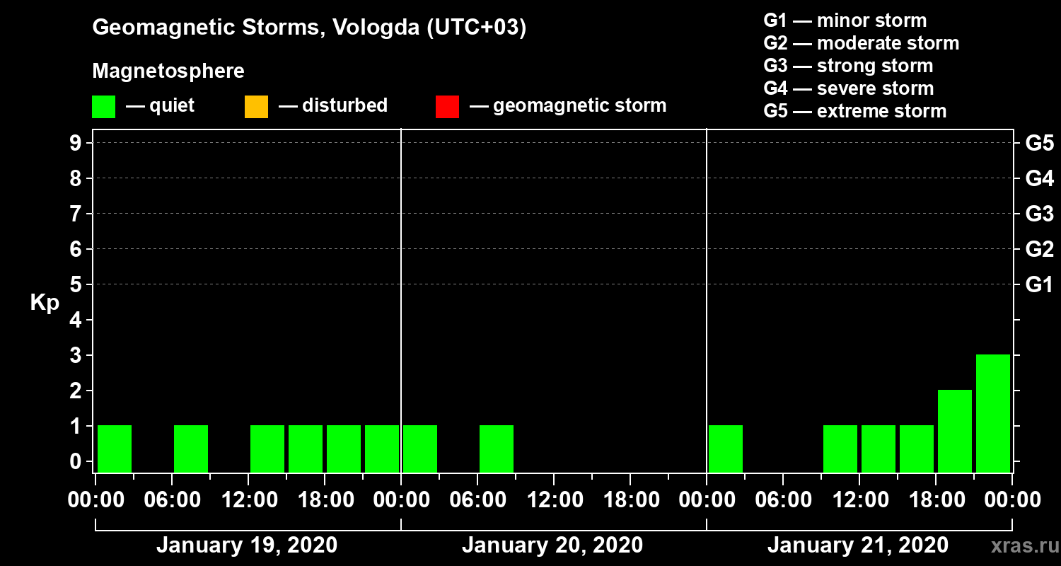 Geomagnetic storms in Vologda on Jan 21, 2020
