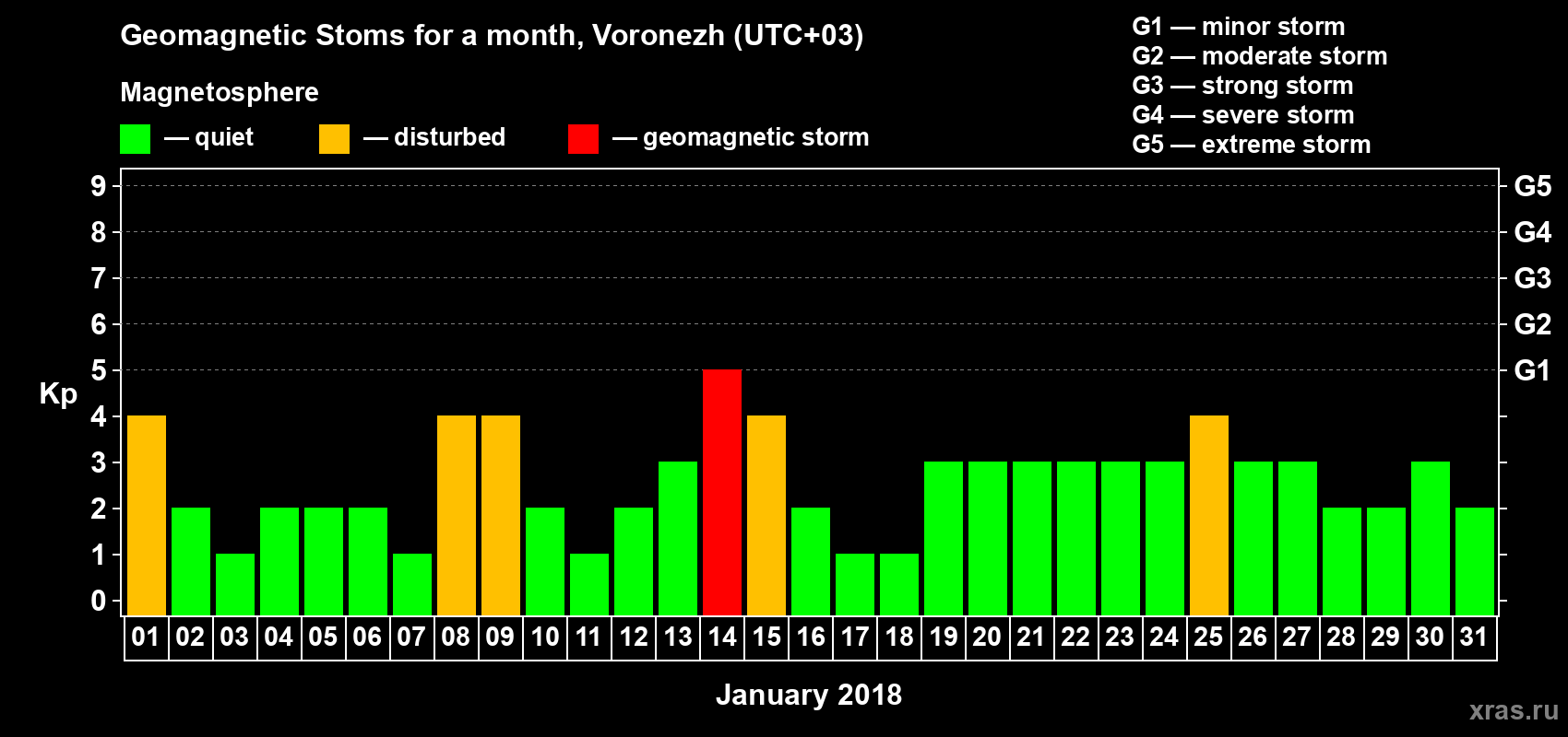 Geomagnetic storms in Voronezh in January 2018