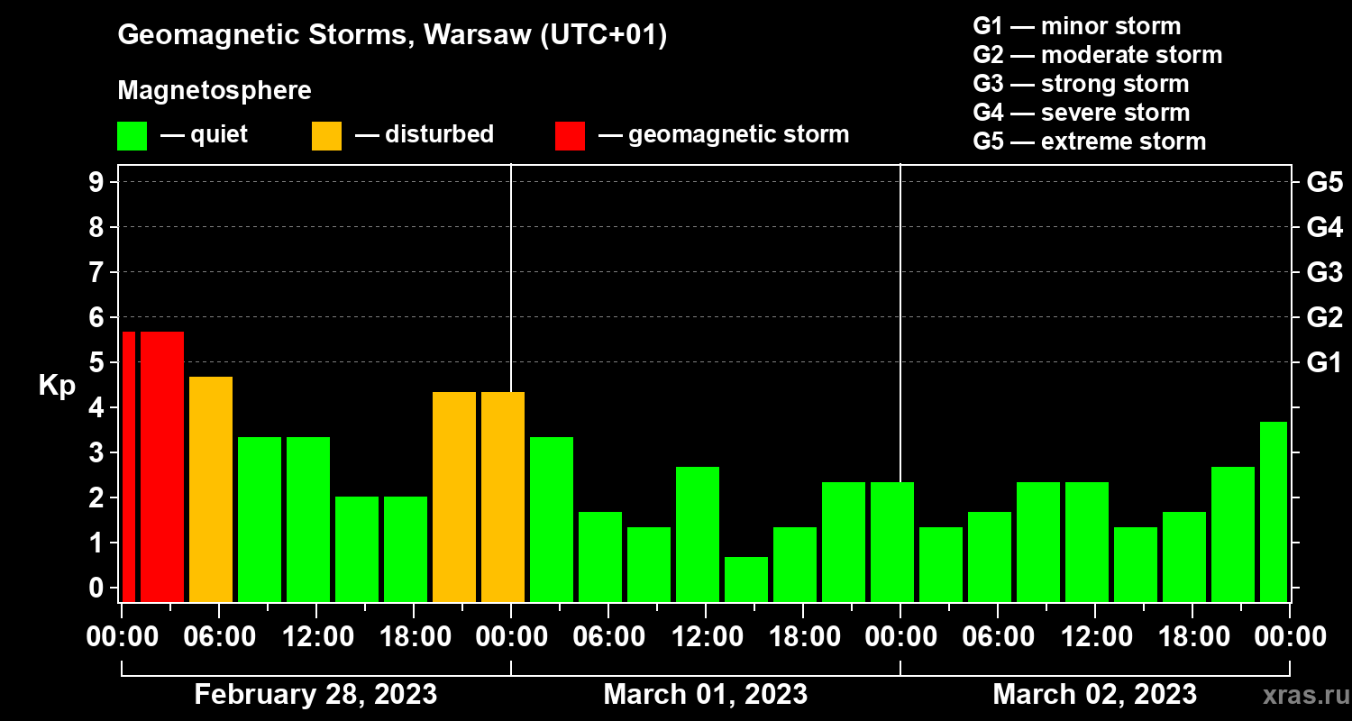 Geomagnetic storms in Warsaw on Mar 02, 2023