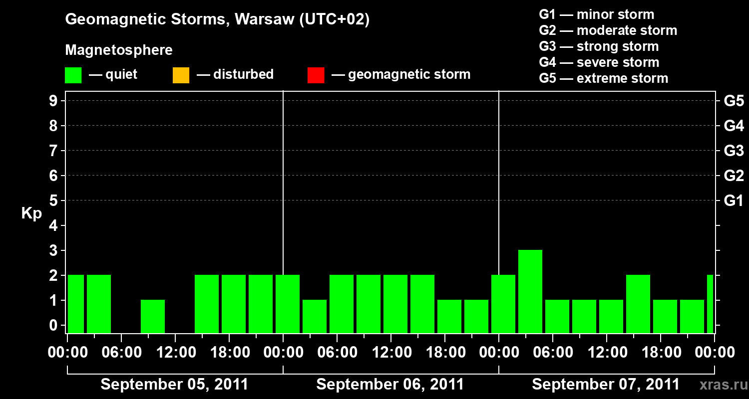 Geomagnetic storms in Warsaw on Sep 07, 2011