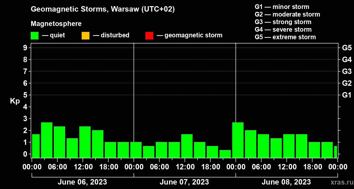 Geomagnetic storms in Warsaw on Jun 08, 2023