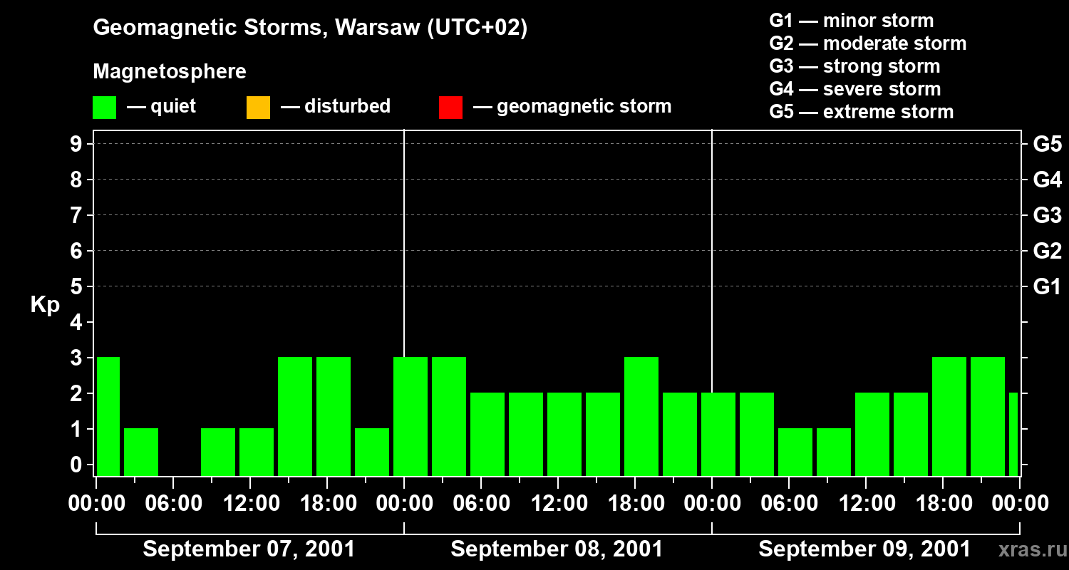 Geomagnetic storms in Warsaw on Sep 09, 2001