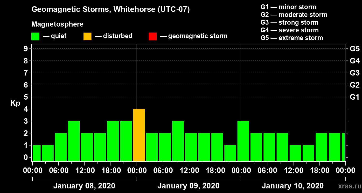 Geomagnetic storms in Whitehorse on Jan 10, 2020