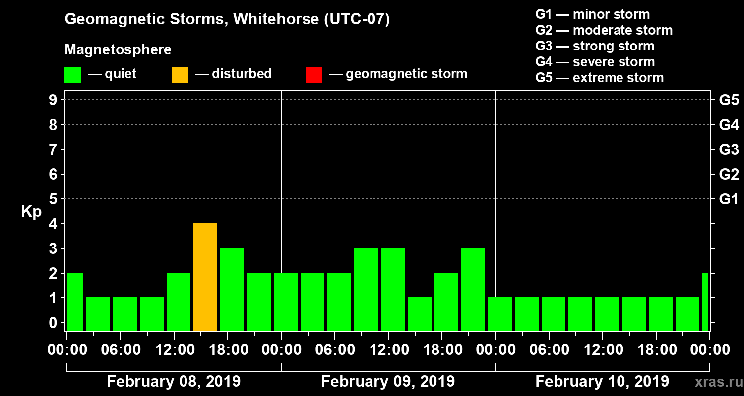 Geomagnetic storms in Whitehorse in February 2019