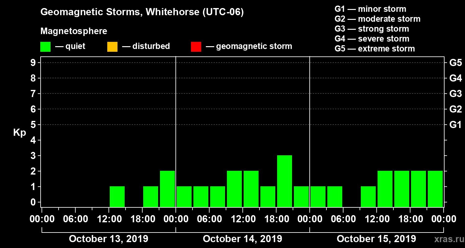 Geomagnetic storms in Whitehorse on Oct 15, 2019