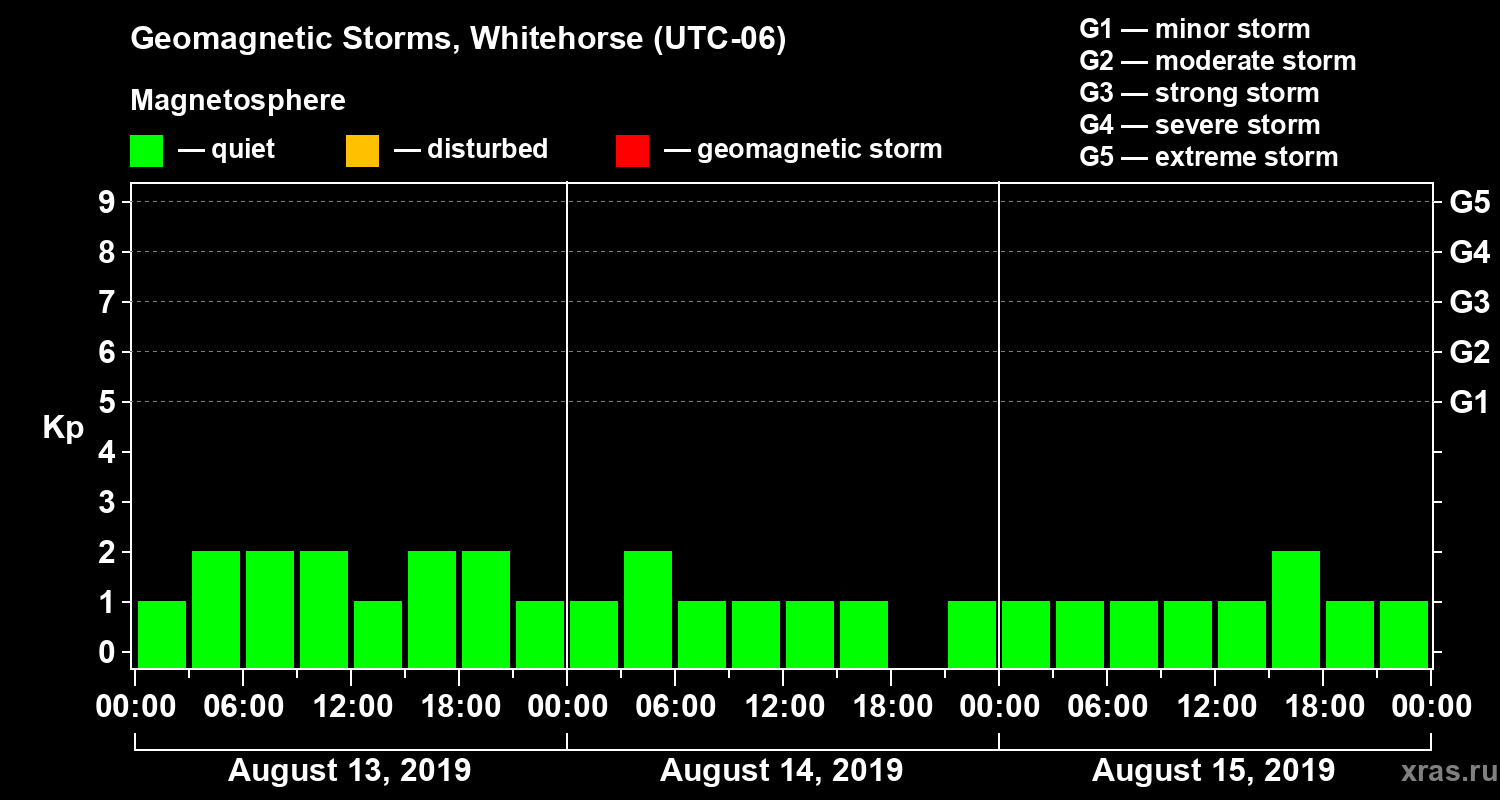 Geomagnetic storms in Whitehorse on Aug 15, 2019