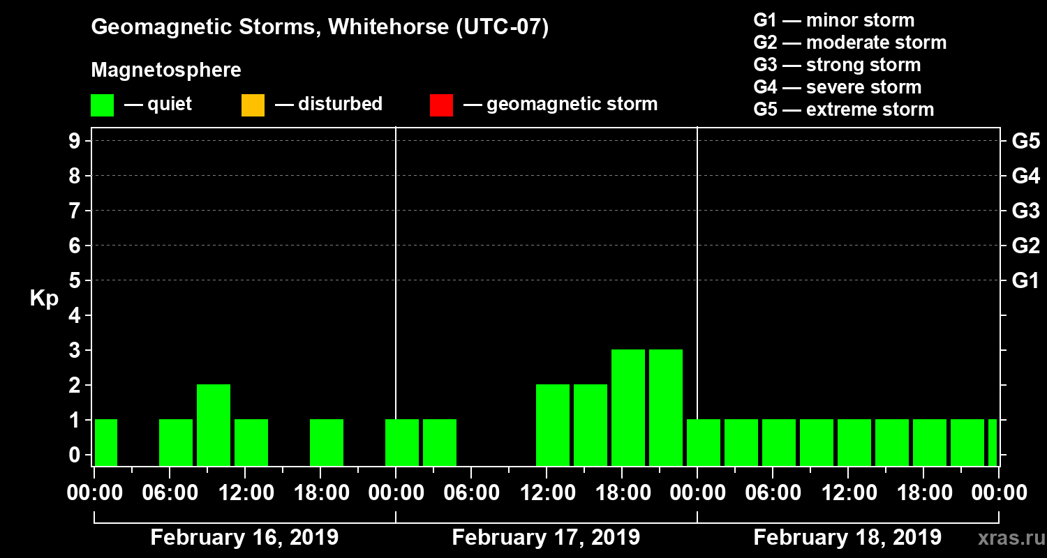 Geomagnetic storms in Whitehorse in February 2019
