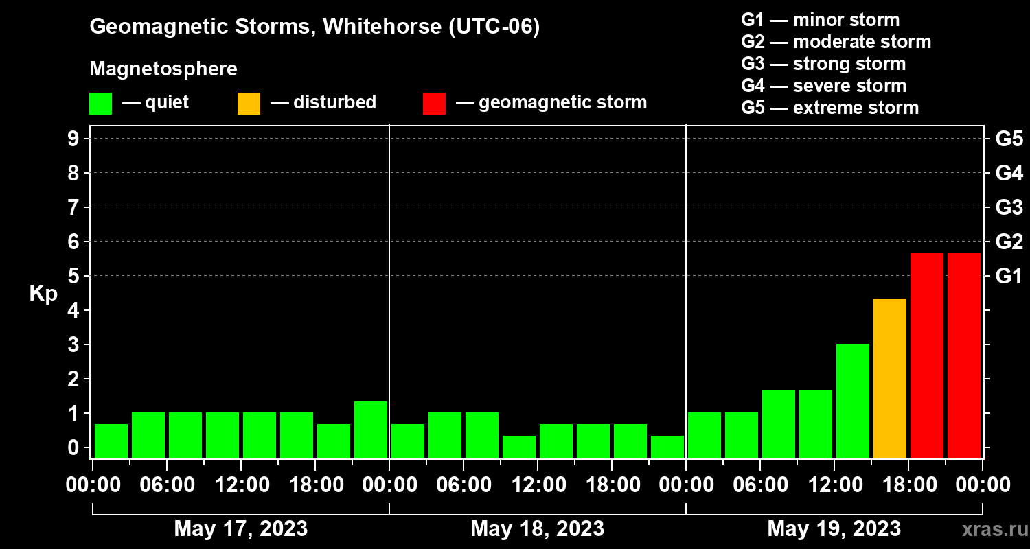 Geomagnetic storms in Whitehorse on May 19, 2023