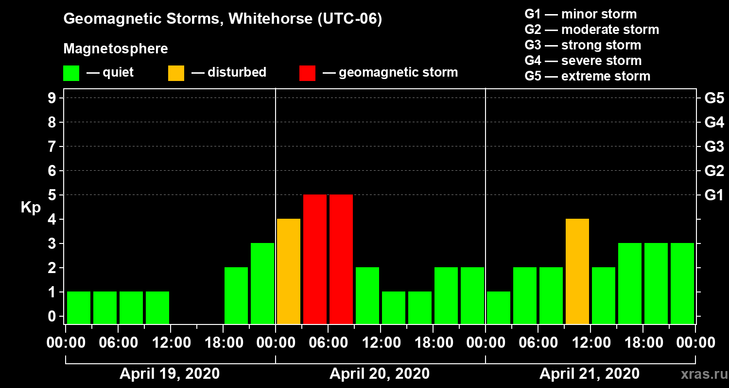 Geomagnetic storms in Whitehorse — Apr 21, 2020