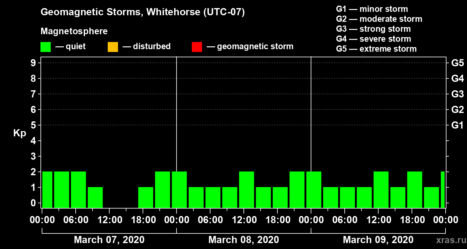 Geomagnetic storms in Whitehorse on Mar 09, 2020