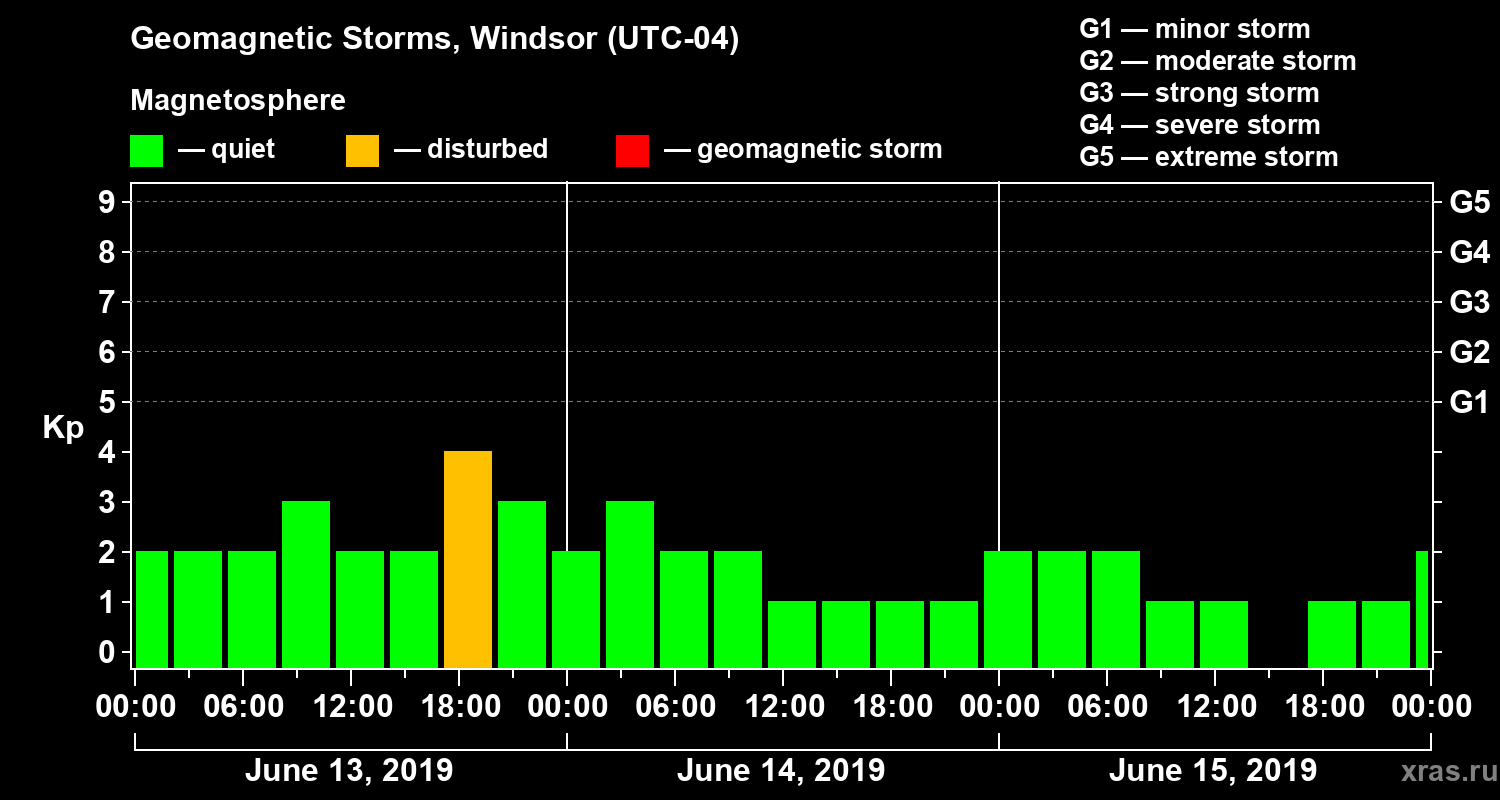 Geomagnetic storms in Windsor in June 2019