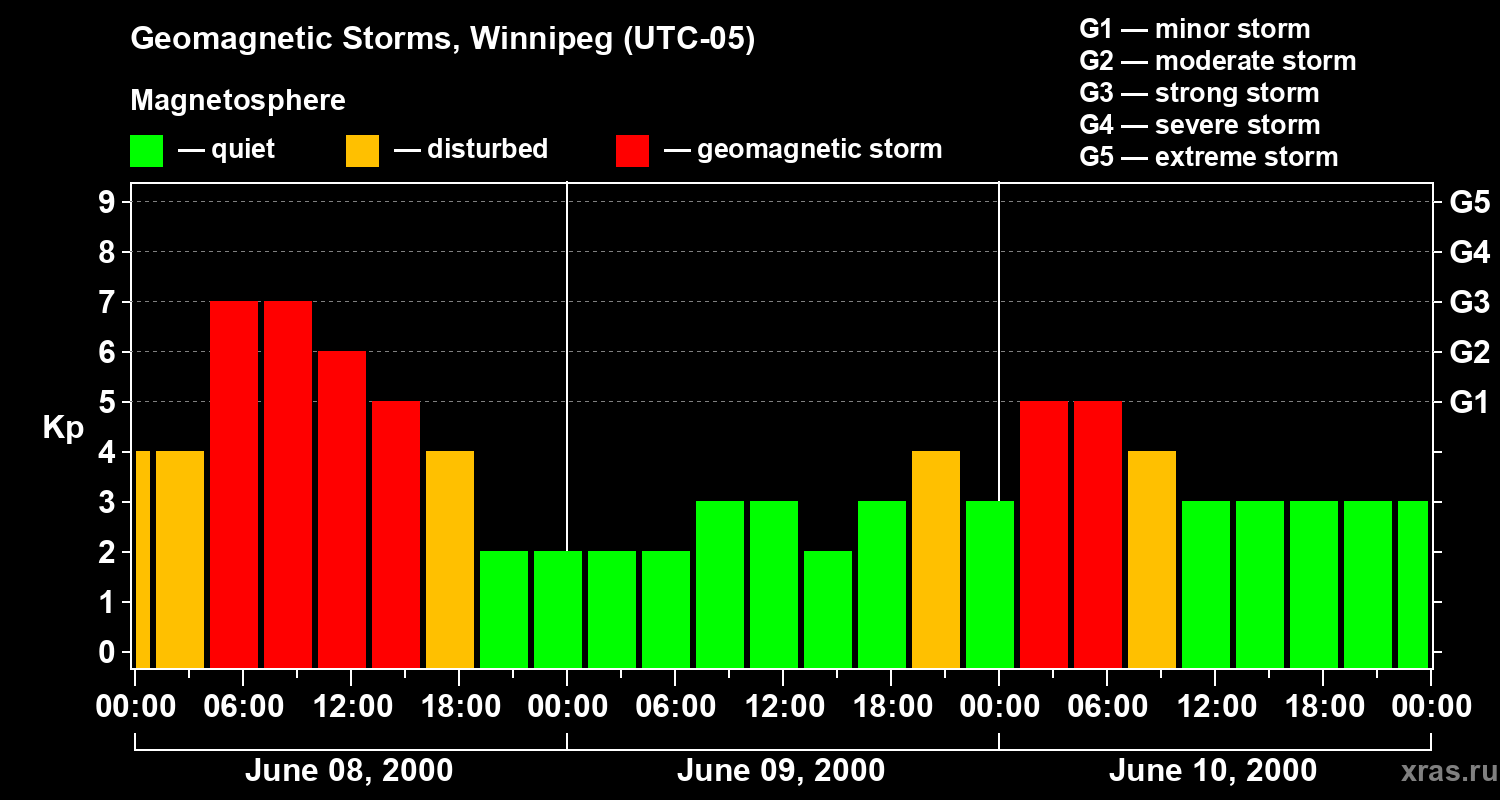 Geomagnetic storms in Winnipeg on Jun 10, 2000