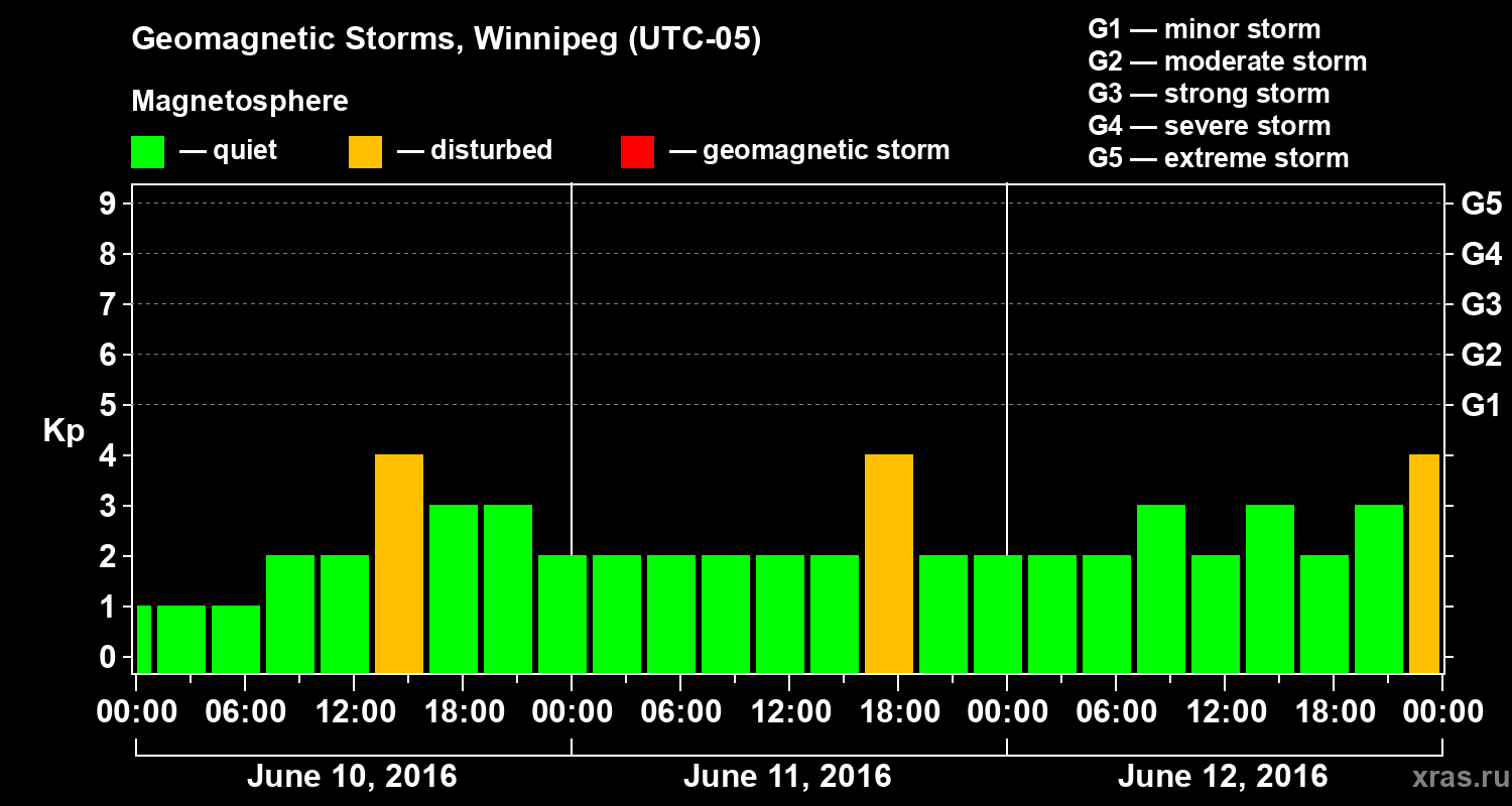 Geomagnetic storms in Winnipeg on Jun 12, 2016