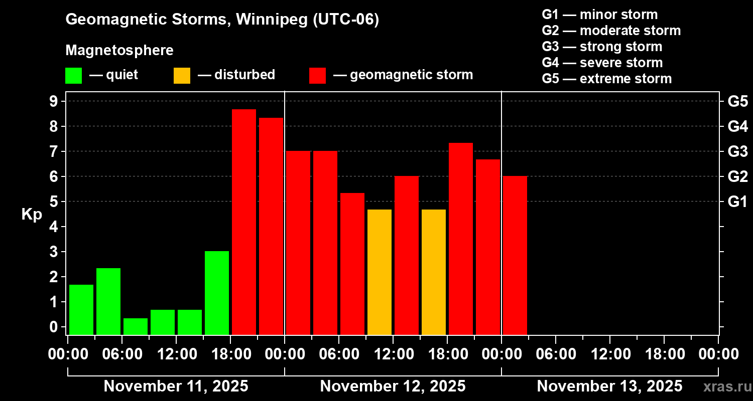 Geomagnetic storms in Winnipeg — Nov 13, 2025