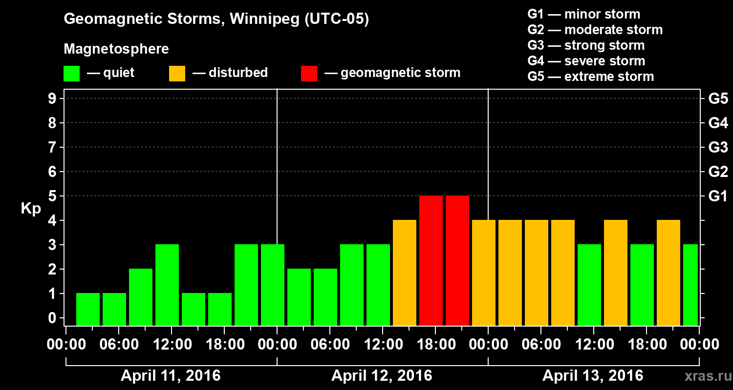 Geomagnetic storms in Winnipeg on Apr 13, 2016