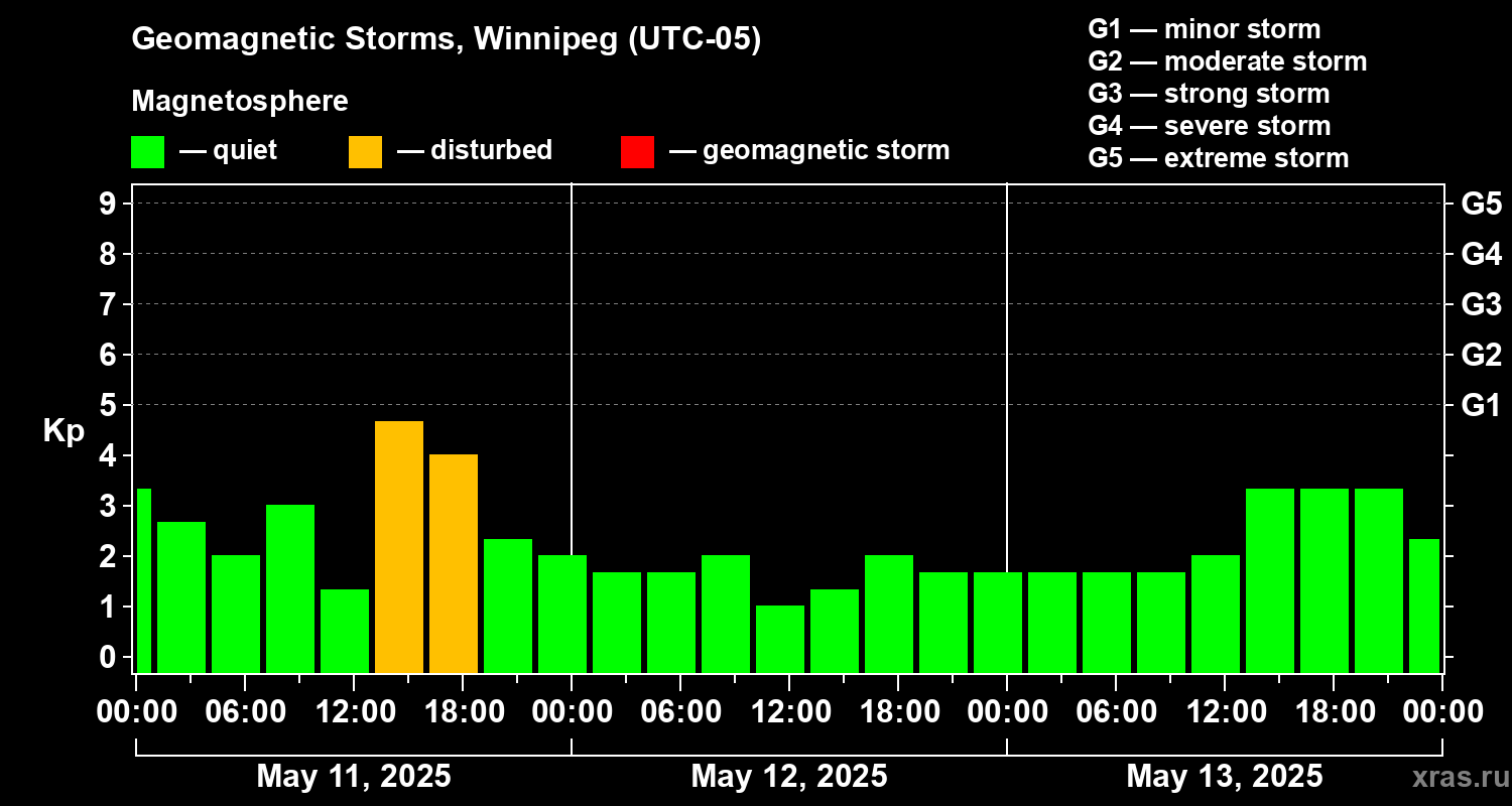 Geomagnetic storms in Winnipeg on May 13, 2025
