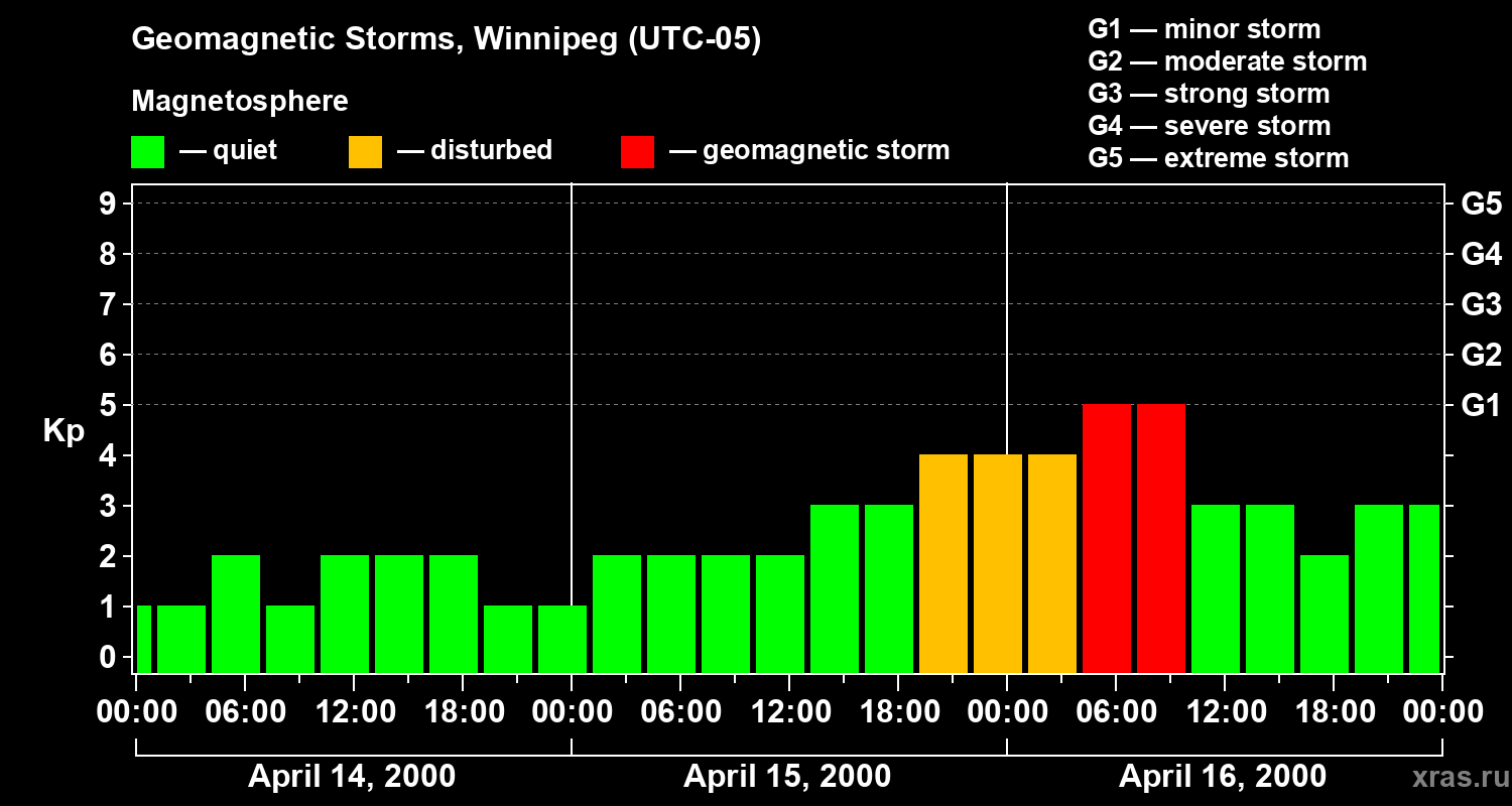 Geomagnetic storms in Winnipeg — Apr 16, 2000