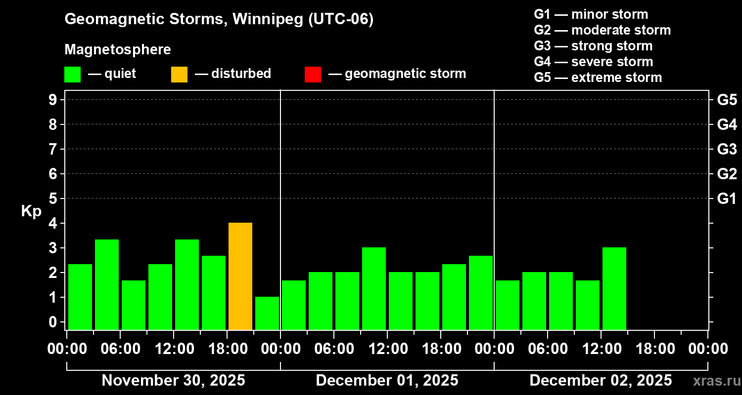 Geomagnetic storms in Winnipeg — Dec 02, 2025