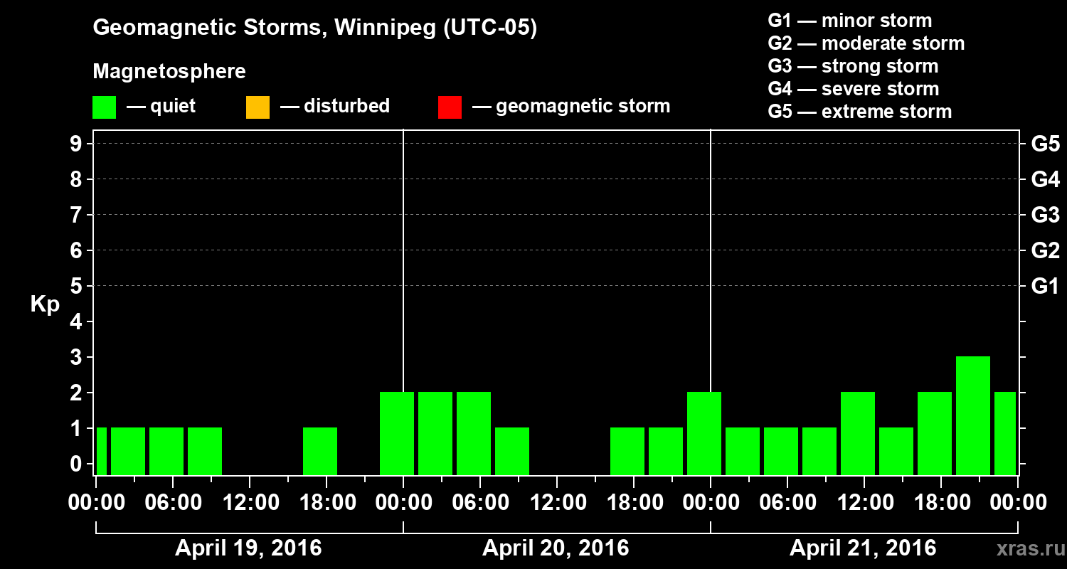 Geomagnetic storms in Winnipeg on Apr 21, 2016