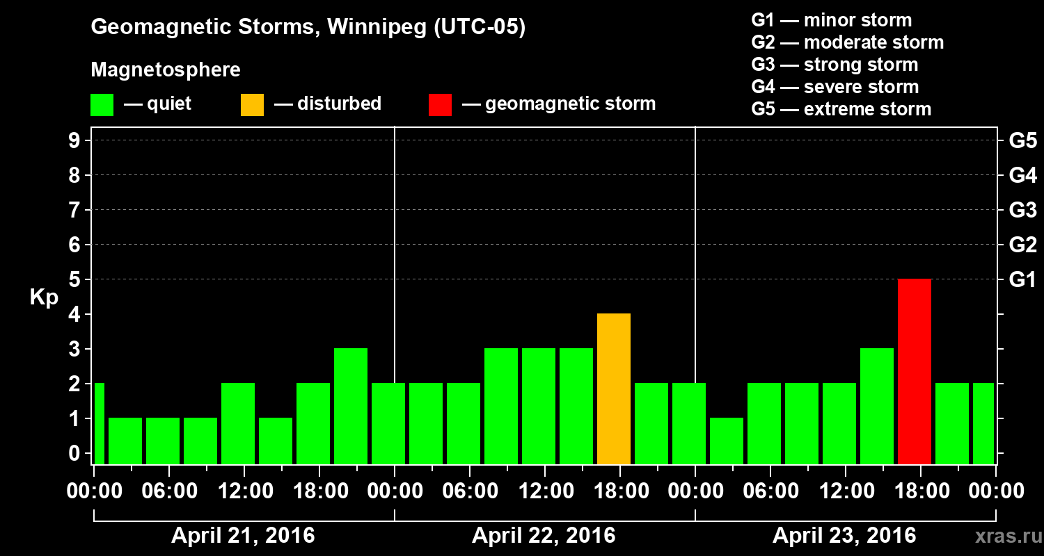 Geomagnetic storms in Winnipeg on Apr 23, 2016