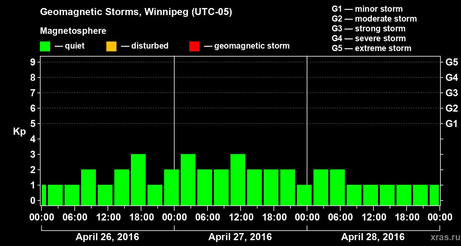 Geomagnetic storms in Winnipeg on Apr 28, 2016