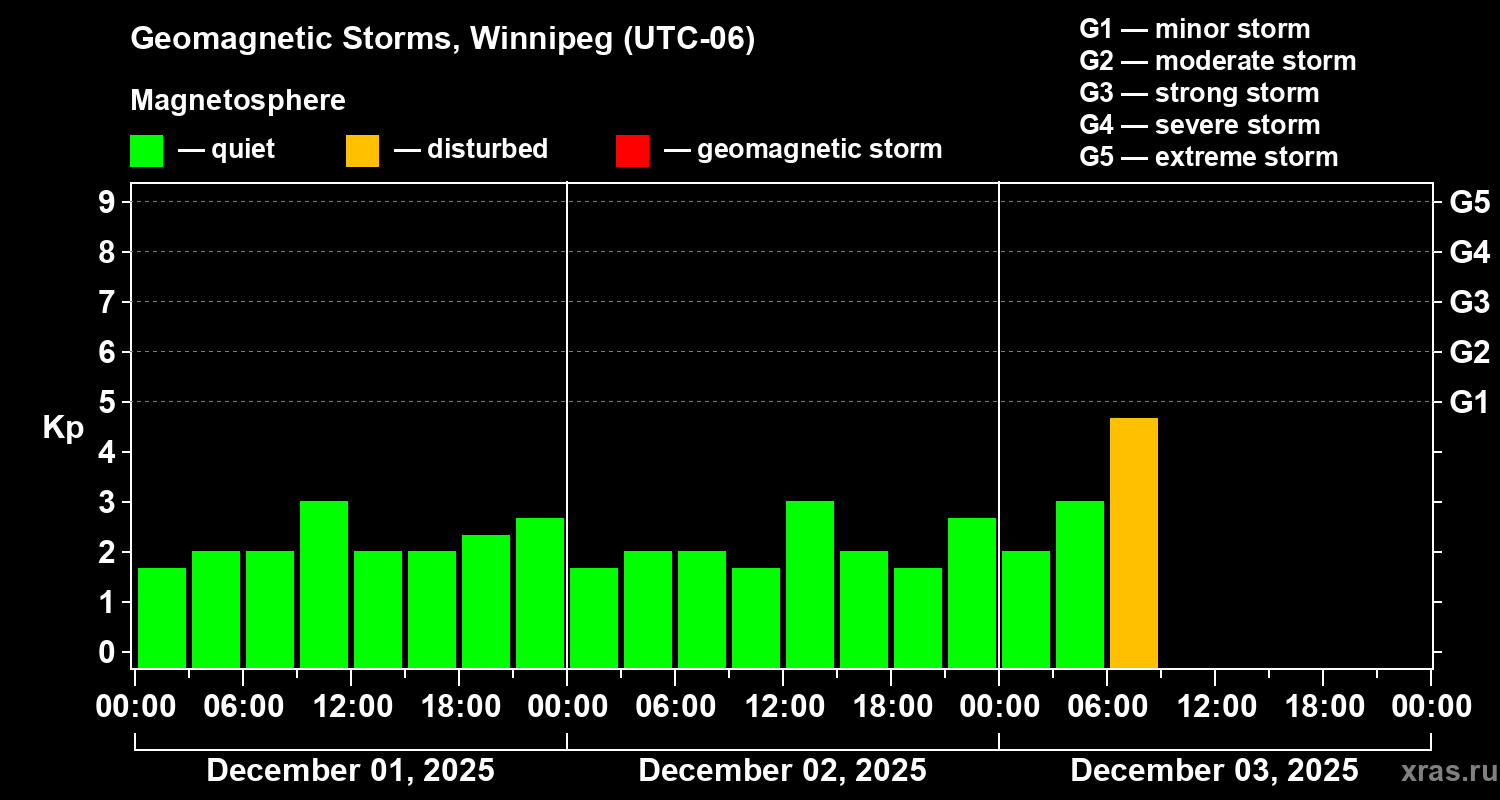 Geomagnetic storms in Winnipeg — Dec 03, 2025
