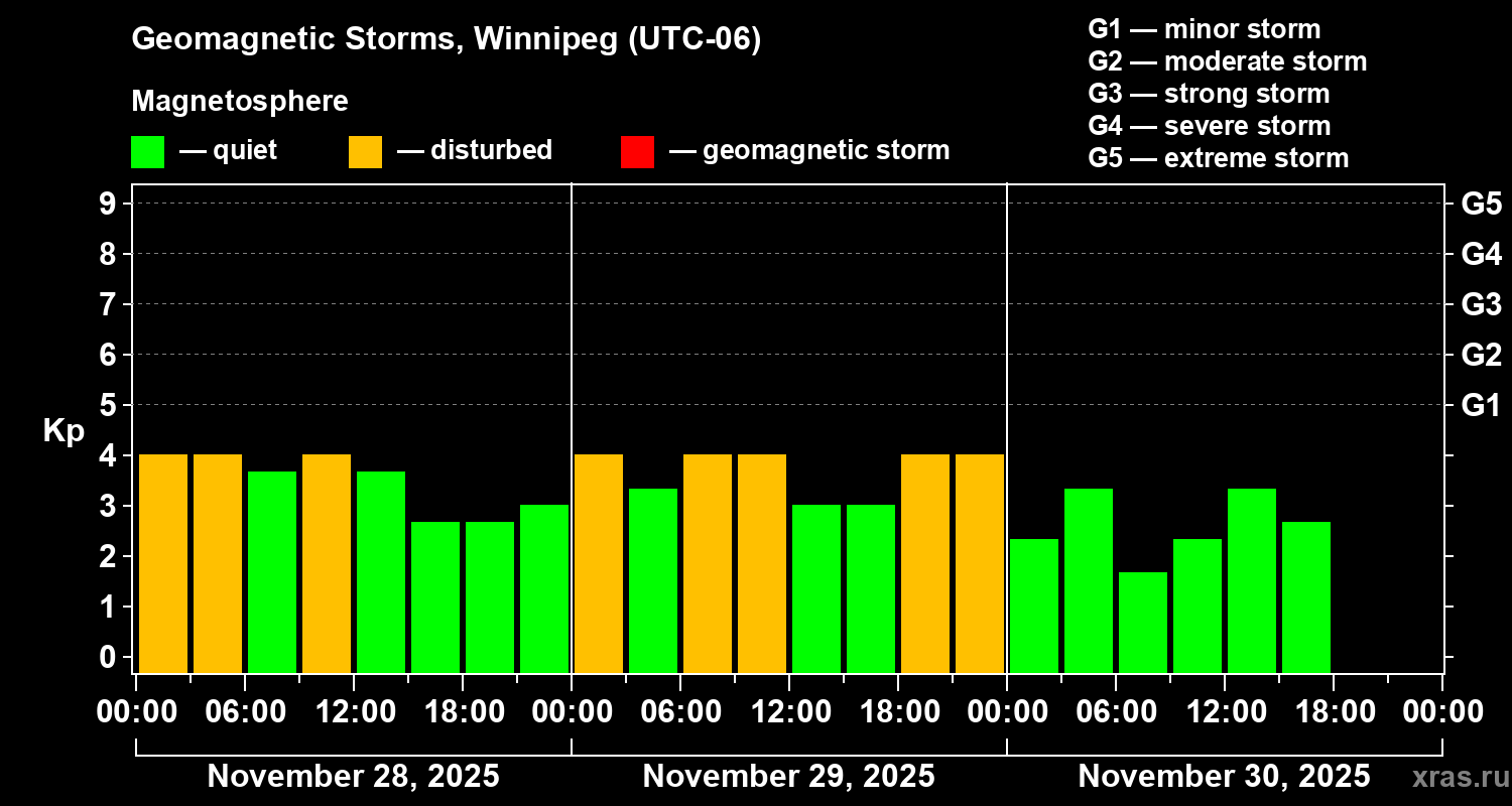 Geomagnetic storms in Winnipeg — Nov 30, 2025