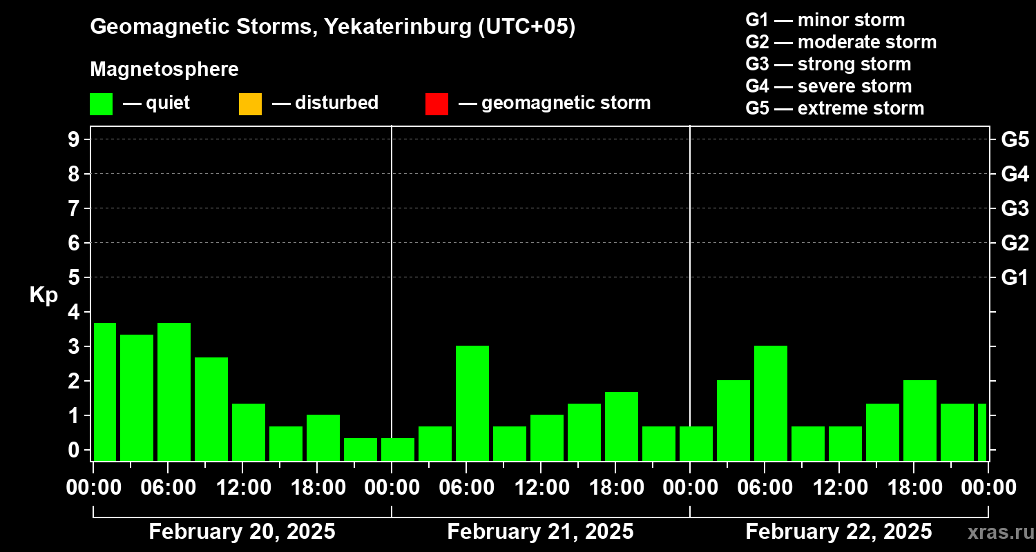 Geomagnetic storms in Yekaterinburg — Feb 22, 2025