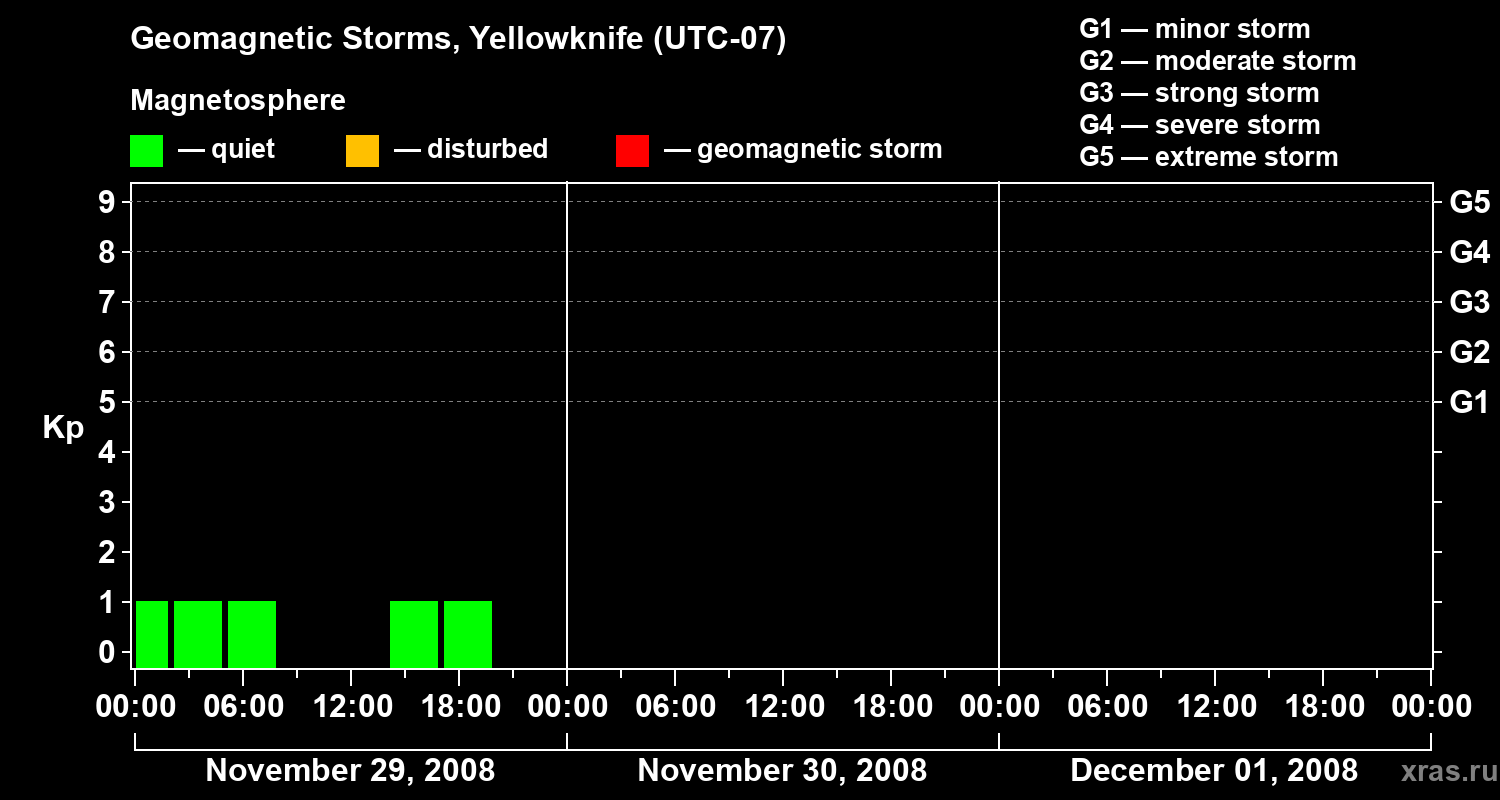 Geomagnetic storms in Yellowknife on Dec 01, 2008