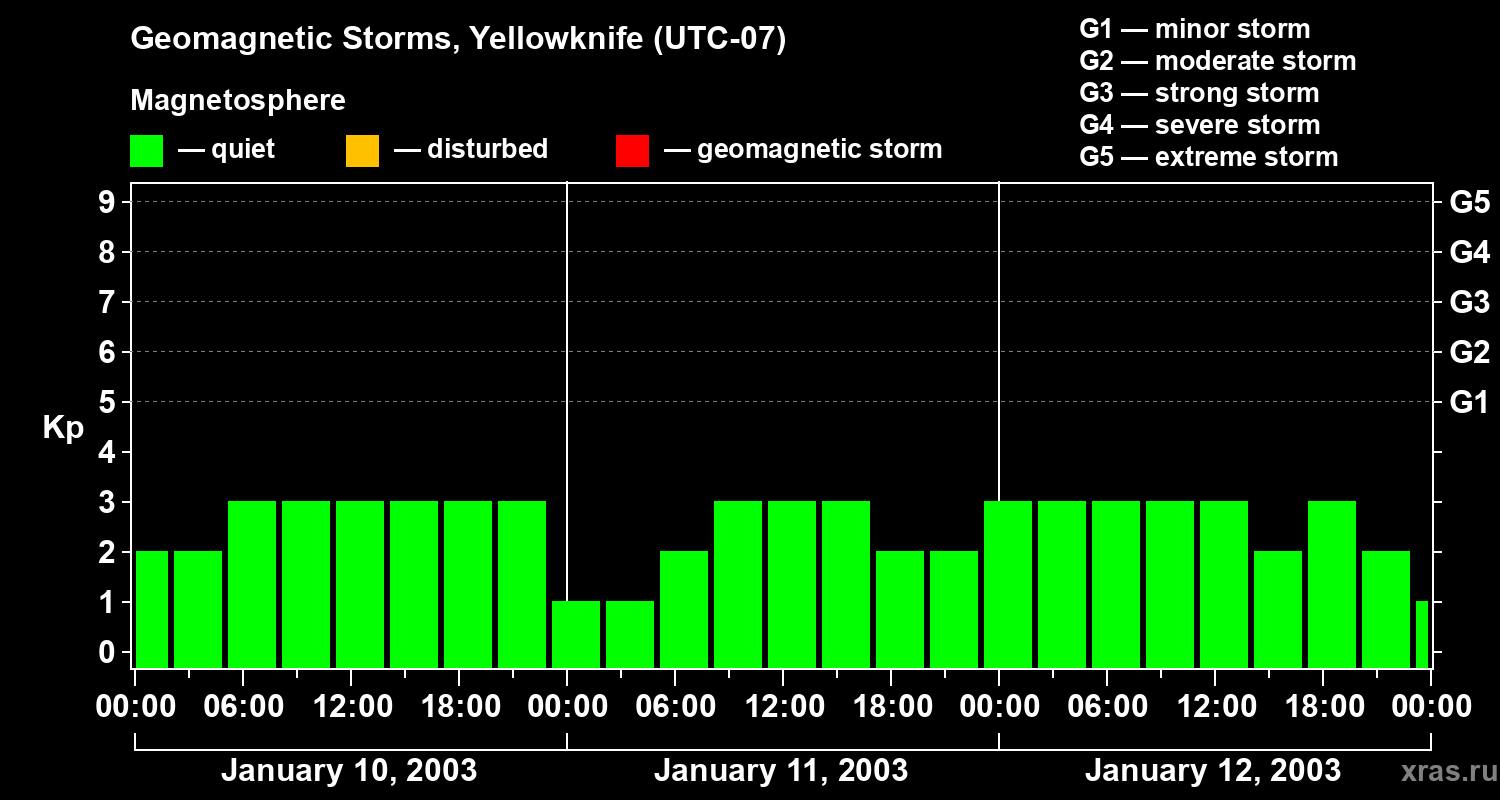 Geomagnetic storms in Yellowknife — Jan 12, 2003
