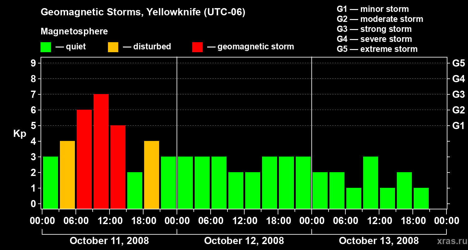 Geomagnetic storms in Yellowknife — Oct 13, 2008