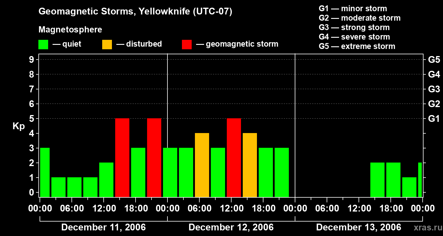 Geomagnetic storms in Yellowknife on Dec 13, 2006