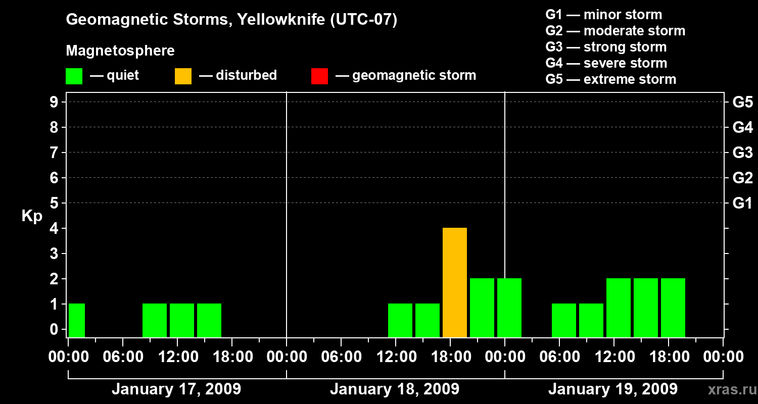 Geomagnetic storms in Yellowknife — Jan 19, 2009