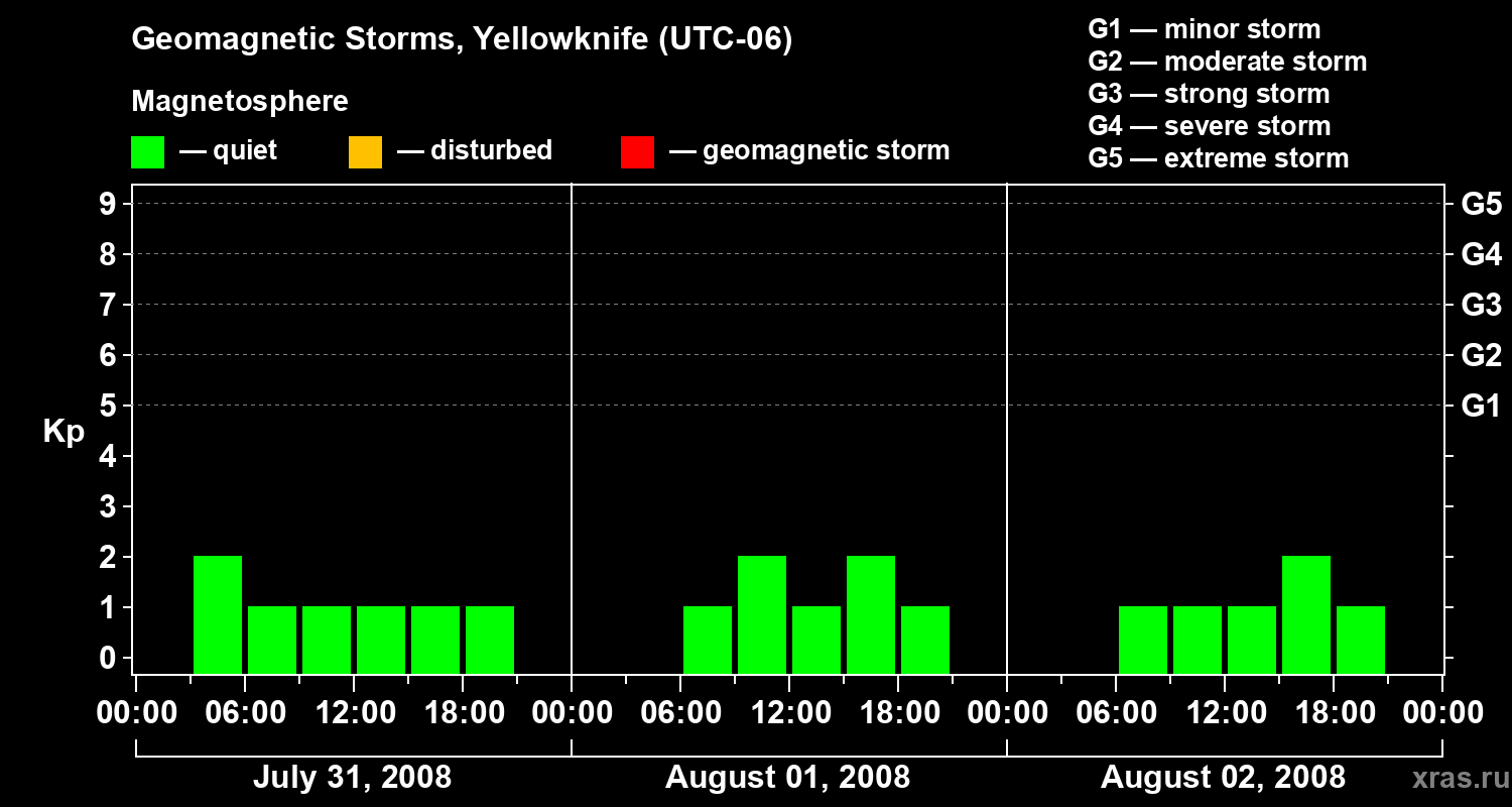 Geomagnetic storms in Yellowknife on Aug 02, 2008