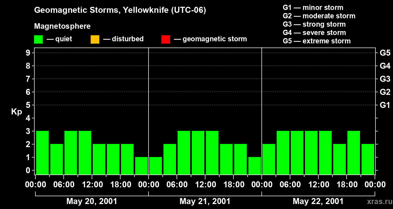 Geomagnetic storms in Yellowknife on May 22, 2001
