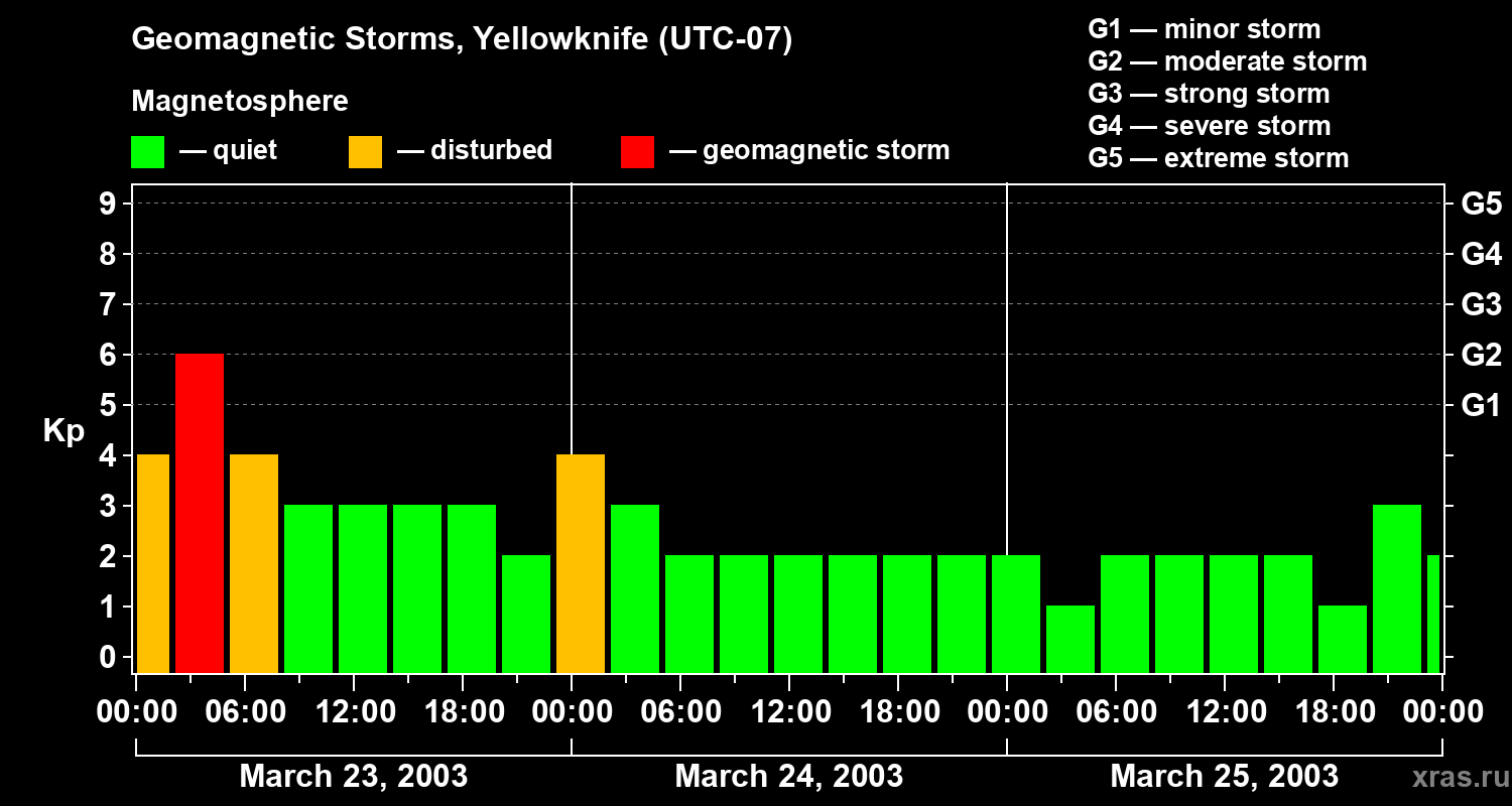 Geomagnetic storms in Yellowknife — Mar 25, 2003