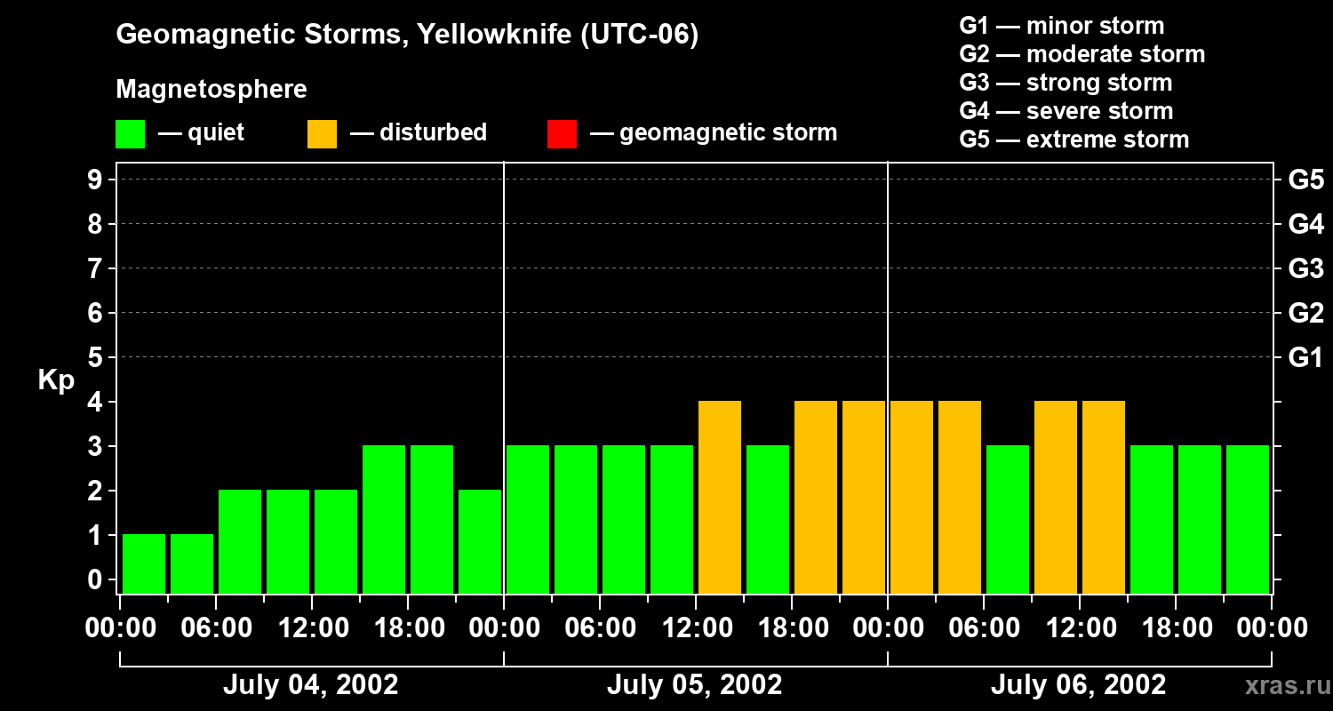 Geomagnetic storms in Yellowknife — Jul 06, 2002