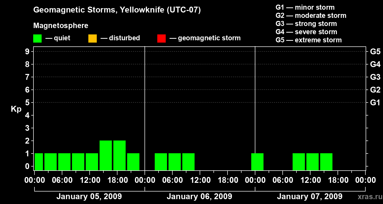 Geomagnetic storms in Yellowknife on Jan 07, 2009