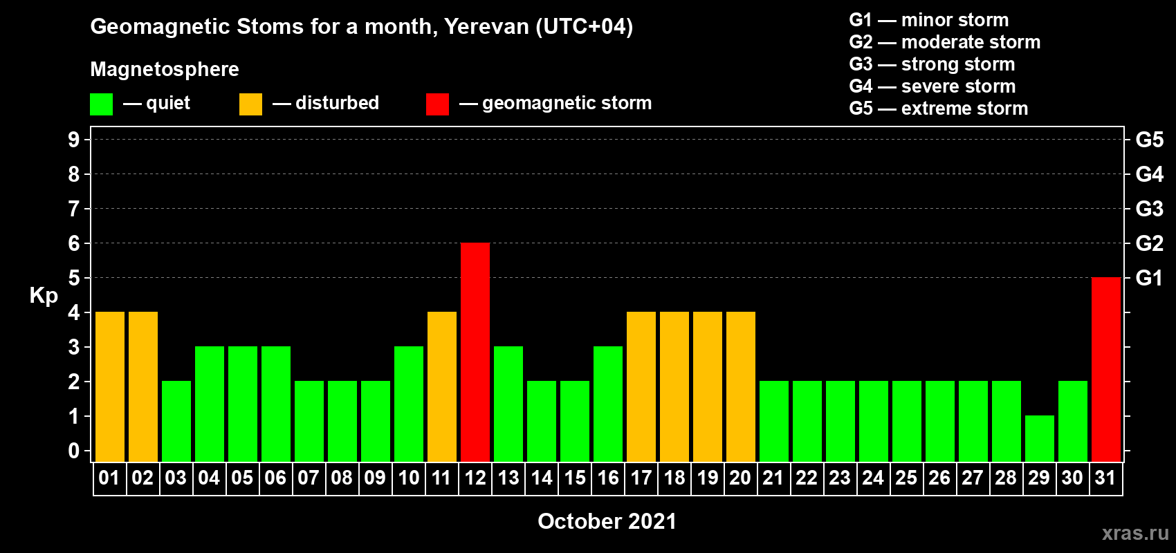Geomagnetic storms in Yerevan in October 2021