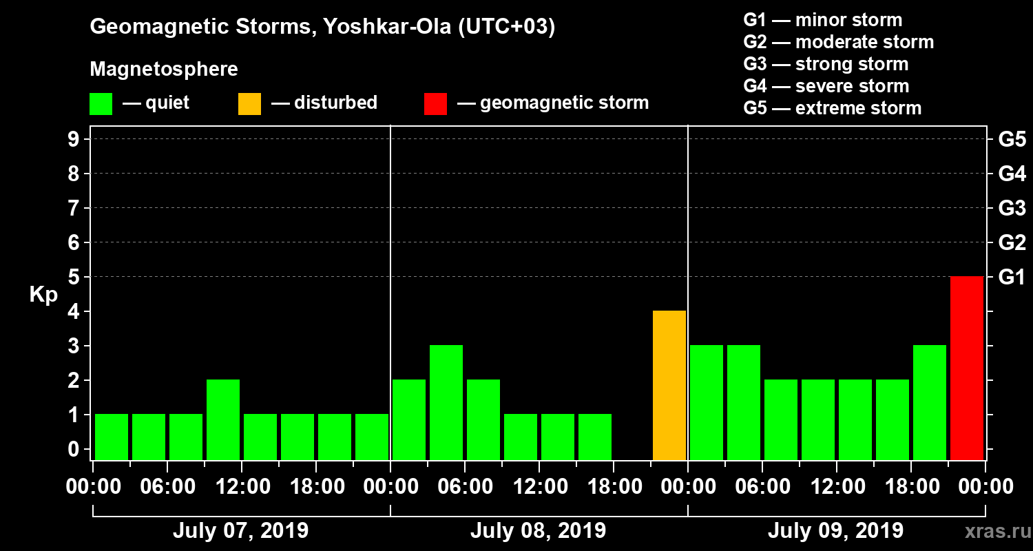 Geomagnetic storms in Yoshkar-Ola on Jul 09, 2019