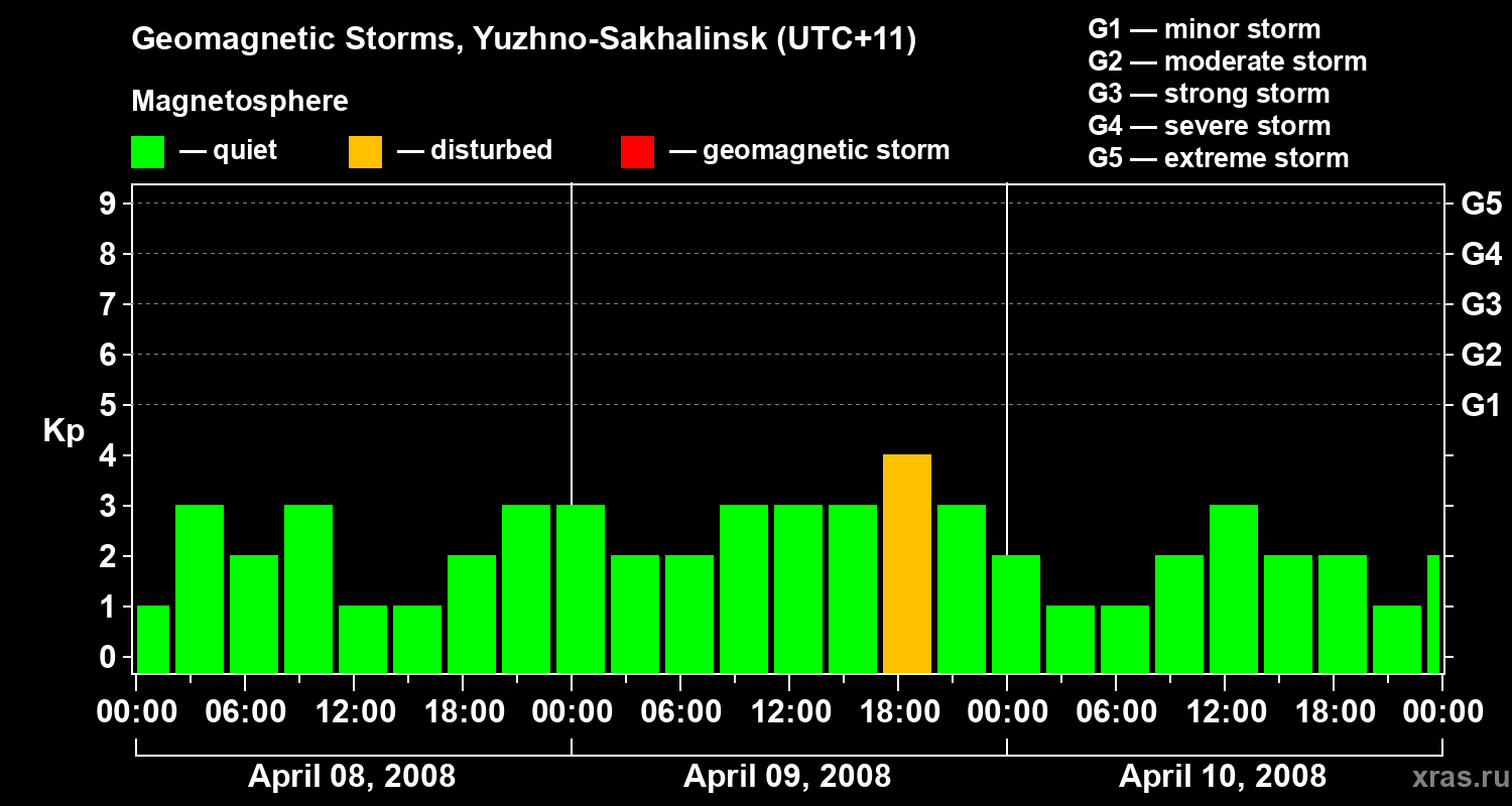 Geomagnetic storms in Yuzhno-Sakhalinsk — Apr 10, 2008
