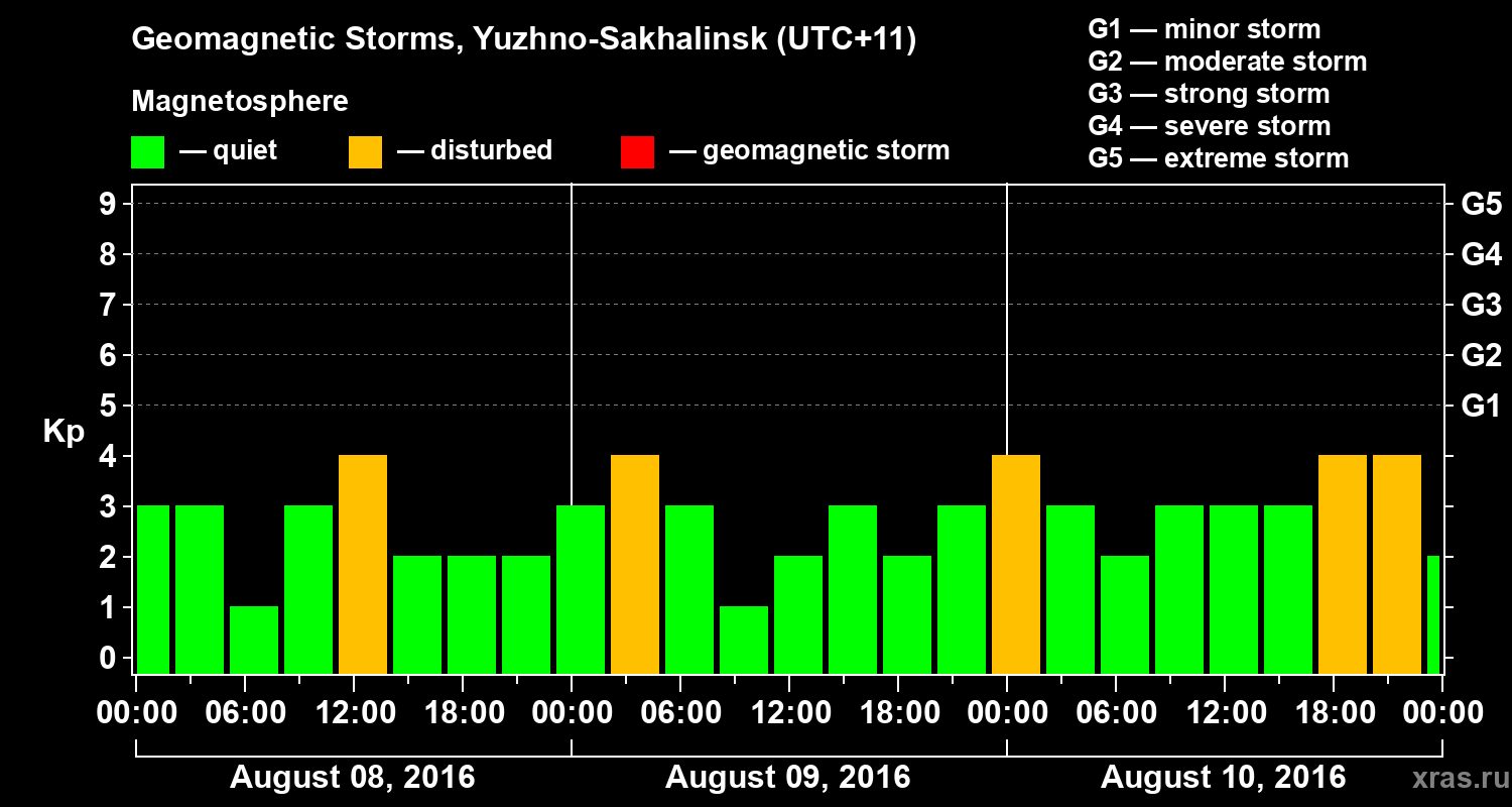 Geomagnetic storms in Yuzhno-Sakhalinsk — Aug 10, 2016