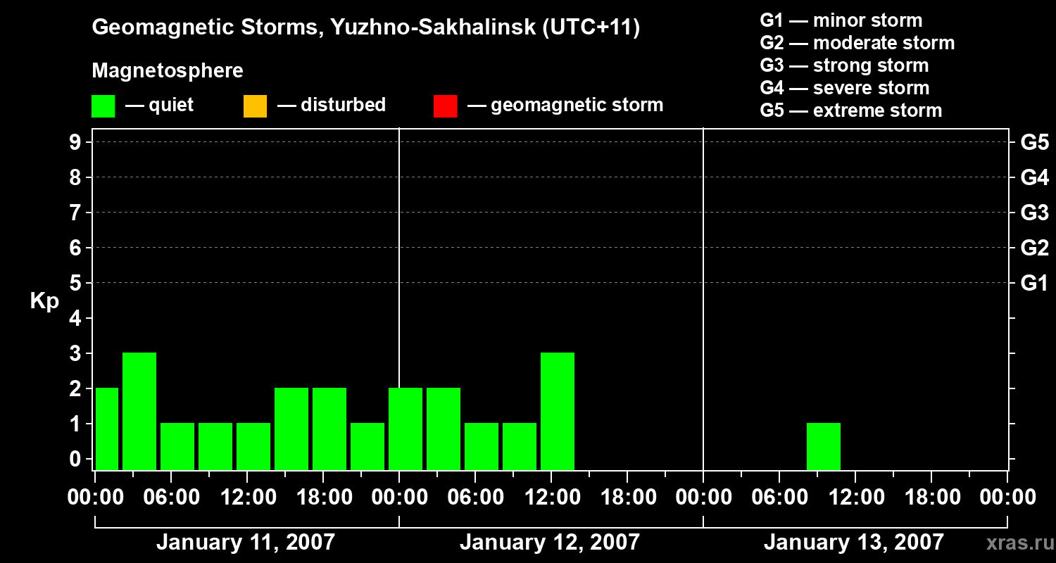 Geomagnetic storms in Yuzhno-Sakhalinsk — Jan 13, 2007