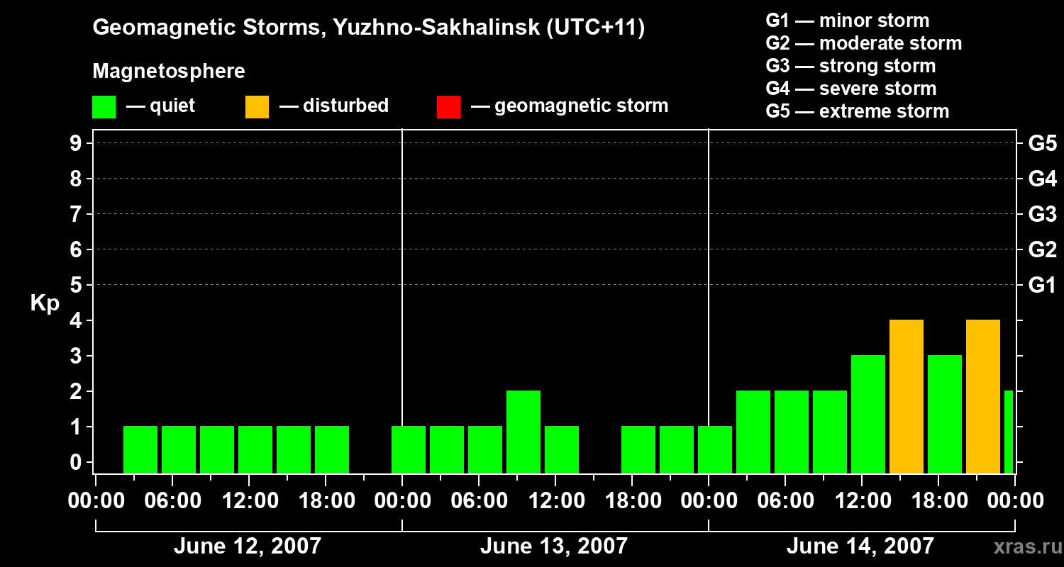 Geomagnetic storms in Yuzhno-Sakhalinsk — Jun 14, 2007