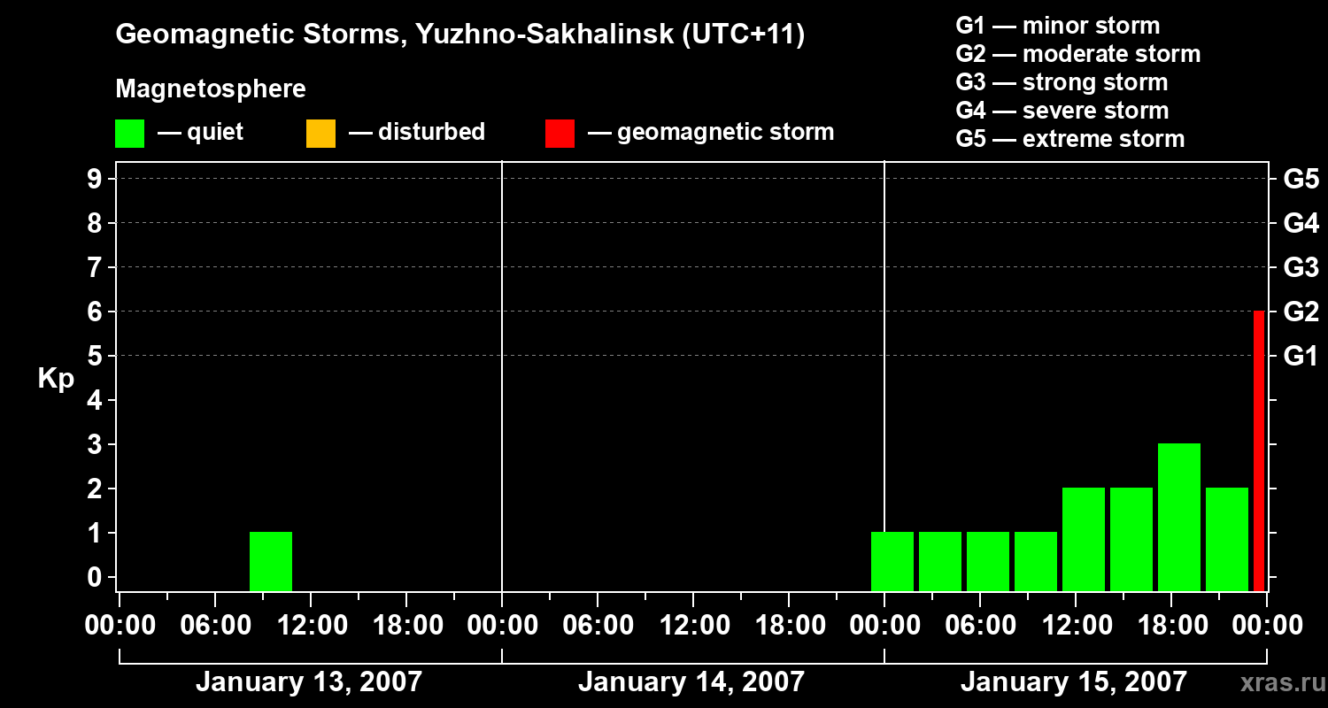 Geomagnetic storms in Yuzhno-Sakhalinsk — Jan 15, 2007