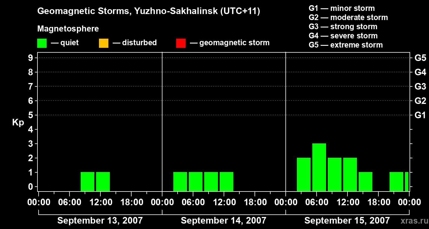 Geomagnetic storms in Yuzhno-Sakhalinsk — Sep 15, 2007