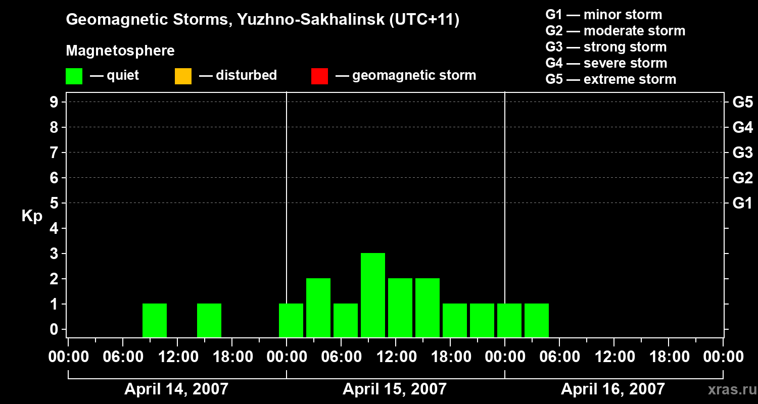 Geomagnetic storms in Yuzhno-Sakhalinsk — Apr 16, 2007