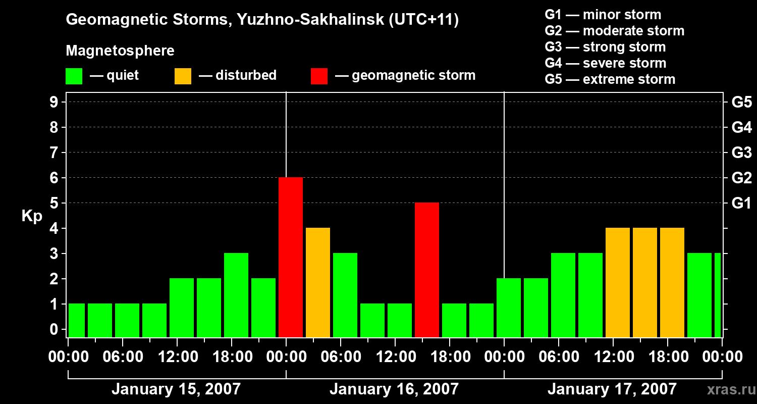 Geomagnetic storms in Yuzhno-Sakhalinsk — Jan 17, 2007