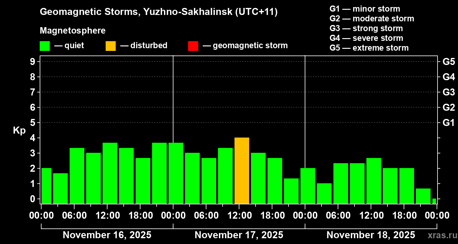 Geomagnetic storms in Yuzhno-Sakhalinsk on Nov 18, 2025